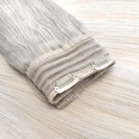 Eine Haarverlängerung besteht natürlich nicht nur aus Haaren, sondern auch aus Verbindungsstellen (Bondings, z.B. aus Keratin, Ringen oder Tapes). Hier finden Sie also Artikel, die Sie zum Wiederverwenden Ihrer Extensions benötigen. Aber nicht nur das. Vor Verbrennungen beim Einsetzten der Haarsträhnen bewahren Sie die Schutzschablonen und der Fingerschutz. Damit die Haarverlängerung schön bleibt, muss sie gut gepflegt werden. Zum Bürsten sollte man auf jeden Fall eine spezielle Extensions-Bürste verwenden - sie schont die Bondings und die Haare. Zum Entfernen von Extensions ist ein Bondinglöser und eine Extensionszange (Remover-Zange) empfehlenswert. Damit kann man die Haarverlängerung rückstandsfrei entfernen. Gerne können Sie nach Entfernen der alten und vor dem Einsetzen der neuen Strähnen ein Peeling-Shampoo verwenden. Für die Farbbestimmung haben wir in dieser Kategorie einen Farbring aus echtem Haar. Damit fällt die Farbauswahl deutlich leichter, als über die Bilder auf dem Monitor, denn je nach Monitoreinstellung können Farben von einander abweichen.