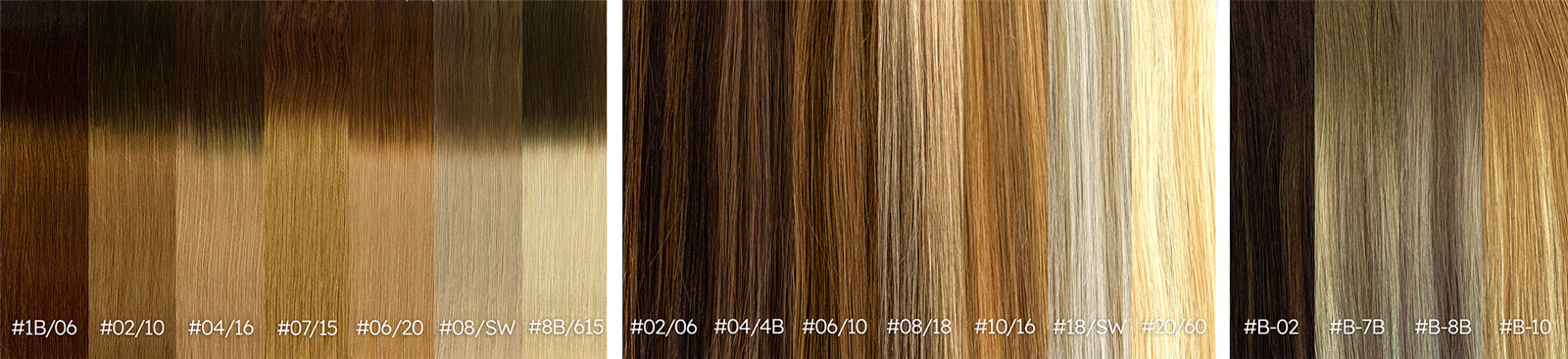 Es ist nicht einfach, die passende Farbe über den PC-Monitor oder Handy-Bildschirm zu bestimmen. Die Darstellung der Farben ist nicht standartisiert und die Geräte werden im nachhinein nicht geeicht, weshalb die Farben von Bildschirm zu Bildschirm unterschiedlich rauskommen. Daher bieten wir einen Echthaar-Farbring an. Dieser Farbring ist aus dem selben echtem Haar, so wie dieExtensionsselbst. Der Farbring beinhaltet alle verfügbaren Farben und dient dem Farbabgleich. Dies ist vorteilhaft, wenn Sie undschlüssig sind und sich zwischen 2-3 Farben nicht entscheiden können. Wenn Sie aber oft die Haarfarbe wechseln oder die Extensions für eigene Kunden bestellen, dann ist einEchthaar-Farbringsehr empfehlenswert.