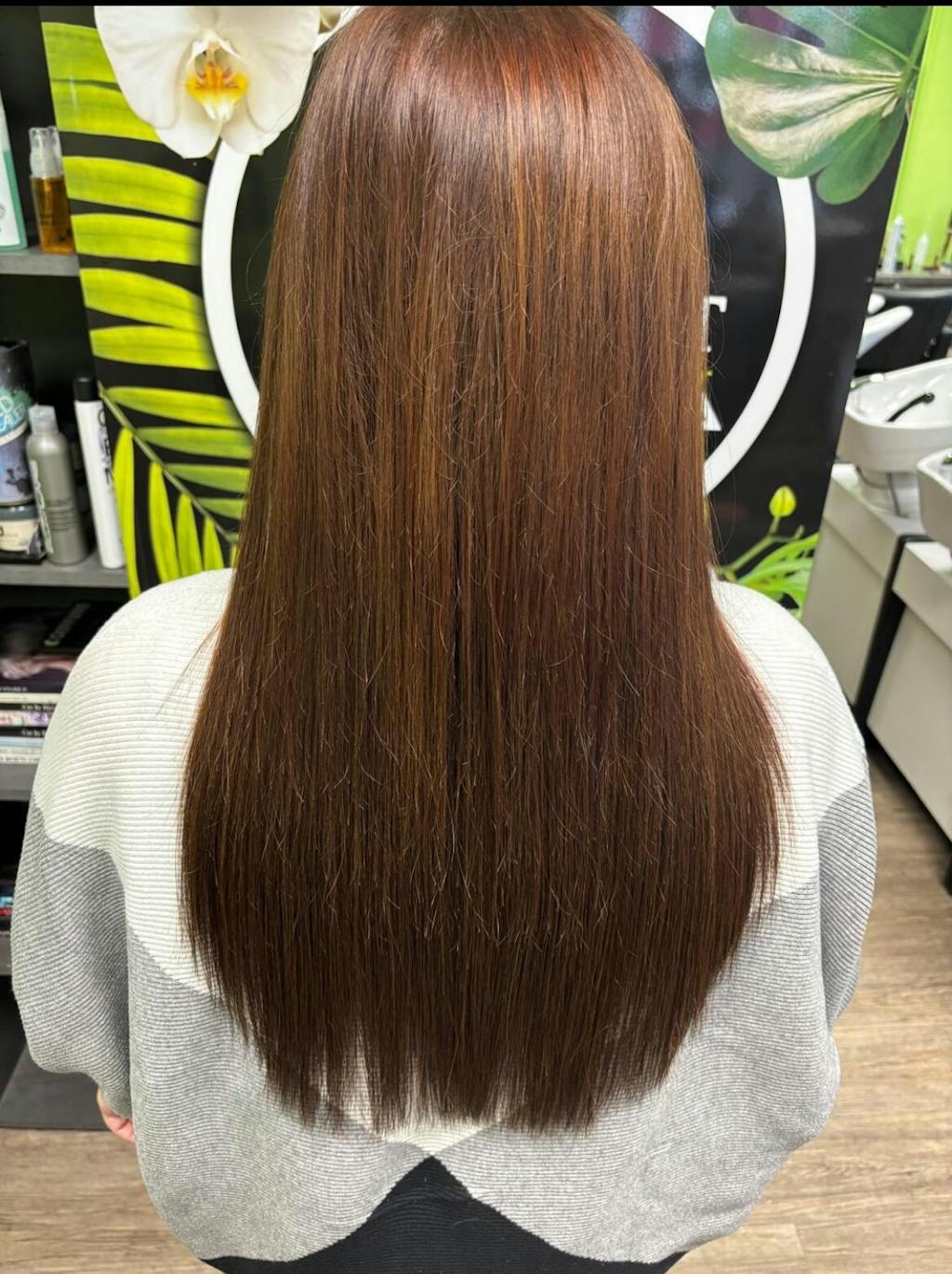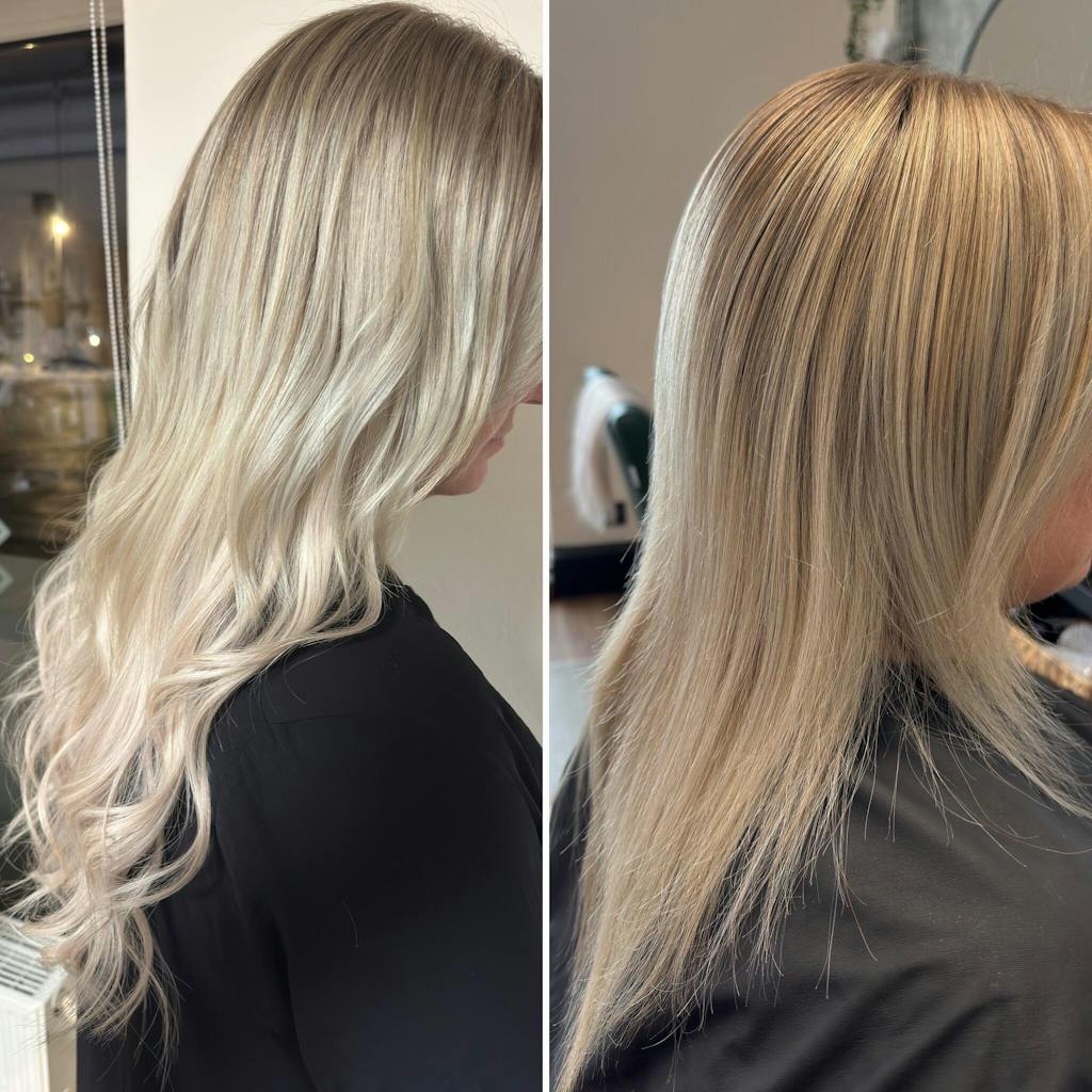 Wir bieten folgende Farbvariationen an: einfarbig, gesträhnt, balayage und root. Die Länge des Root-Ansatzes beträgt ca. 7-9 cm.